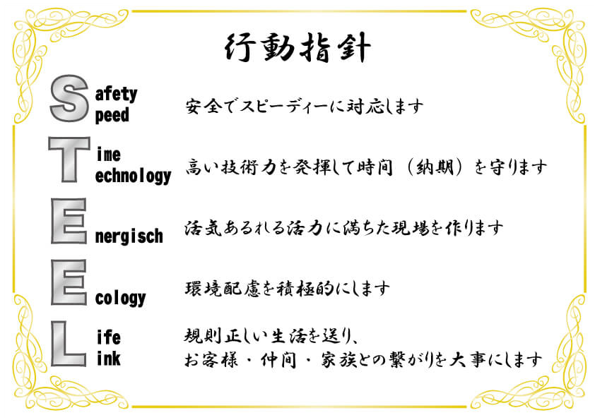 弊社は鉃筋業界ではまだまだですが大きな目標・目的があり、その達成のため日々努力し皆様にお役に立てるように邁進していきたいと考えております。